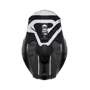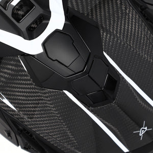 Die Helmschale besteht aus hochwertigem Carbon und ist in zwei Schalengrößen erhältlich – ebenso wie die stoßabsorbierende EPS-Innenschale. Der Helm ist vollständig kompatibel mit allen gängigen Neckbraces (Nackenprotektoren).